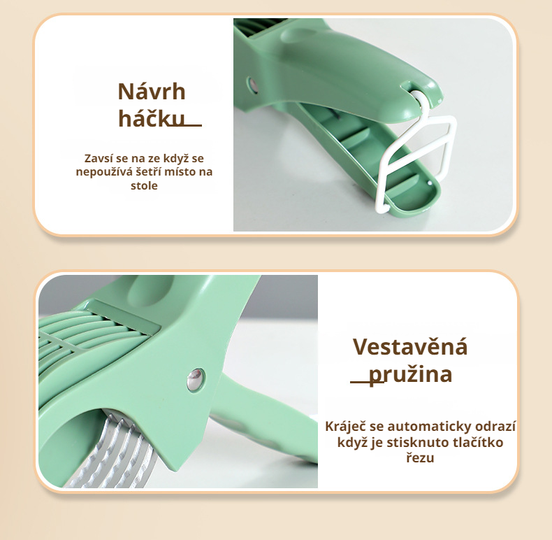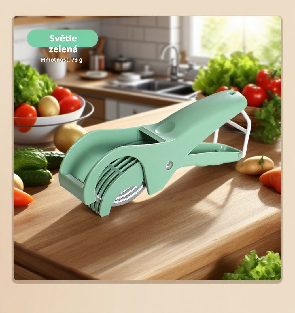 Nerezový multifunkční kráječ na ovoce a zeleninu usnadňuje krájení, je odolný, snadno se čistí a šetří čas v kuchyni. Vhodný pro různé druhy potravin.